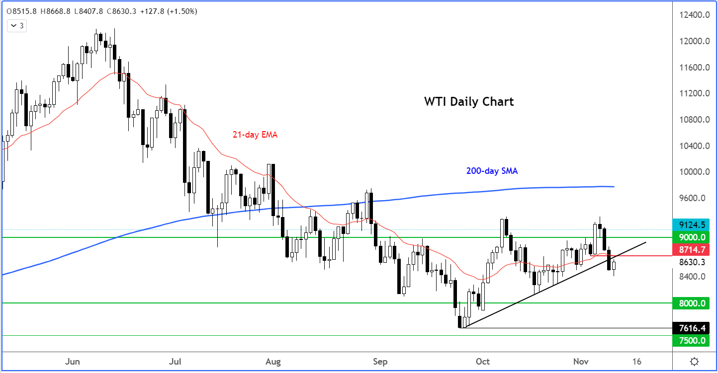 WTI走势向下突破带来更多遏制通胀的利好