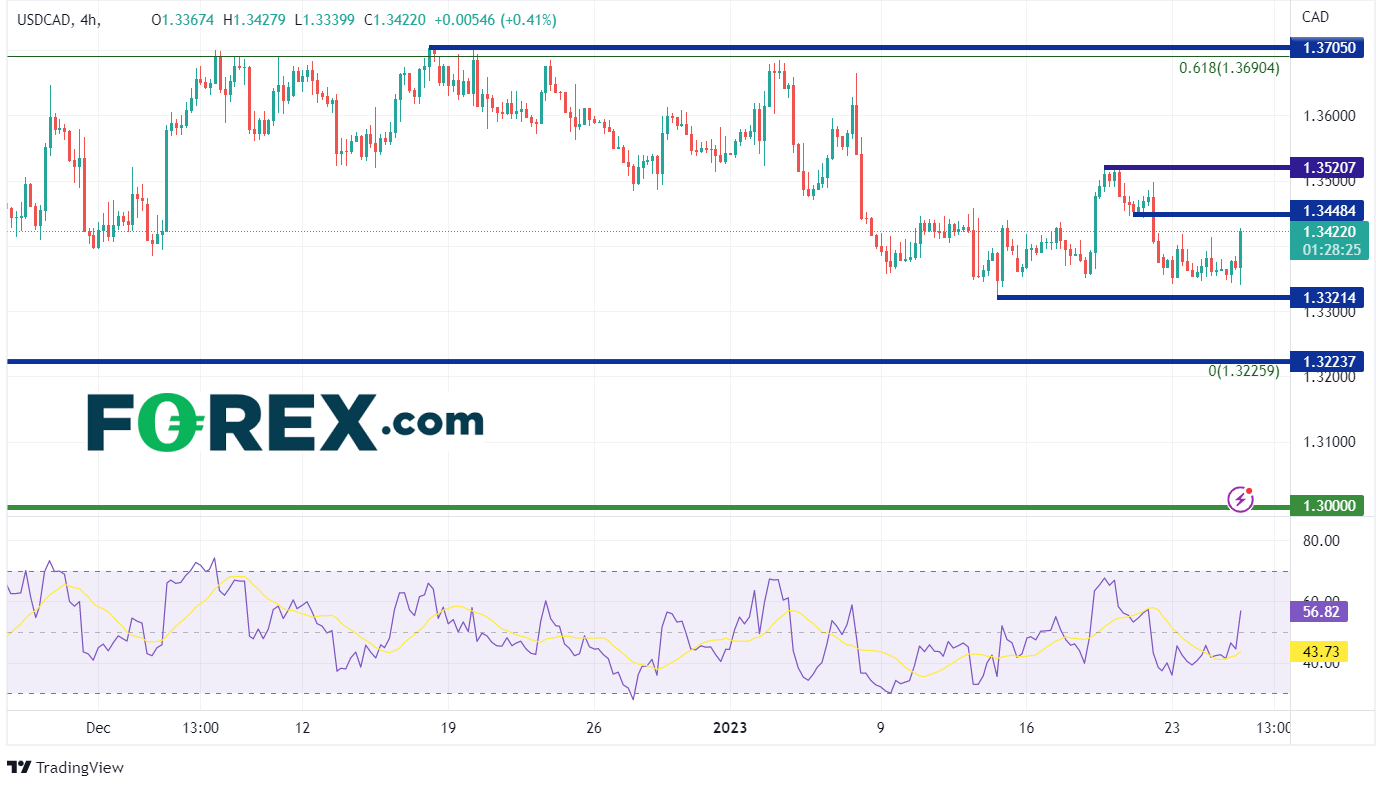 尽管美元/加元在声明发布后已上涨了60点,但从大方向上来看,价格仍相对低迷。在240分钟图上,价格竟然无法反弹至1月19日低点1.3448的阻力位。如果价格最终能够能突破该点位,美元/加元可能会升至1月18日的高点1.3521。这将为进一步升至2022年12月16日的高点1.3705打开大门。借以参考,该点位也接近从2022年10月13日高点到2022年11月15日低点区间的61.8%斐波那契回撤位。第一支撑位于今日低点1.3340。在此之下,价格可能会跌至2022年11月15日低点1.3224。跌破该点位将为跌至心理整数支撑位1.3000打开大门。