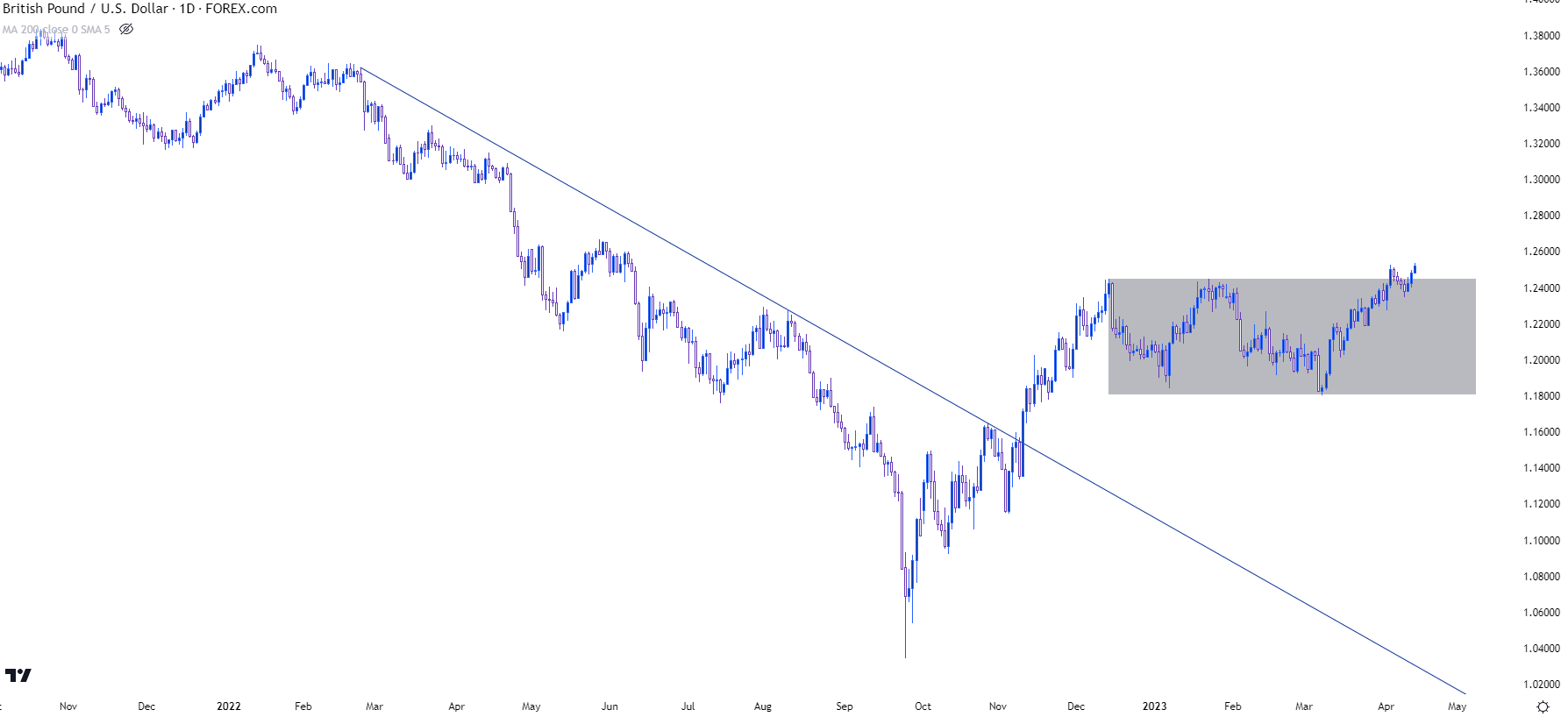 图表由James Stanley编制,Tradingview上的英镑/美元