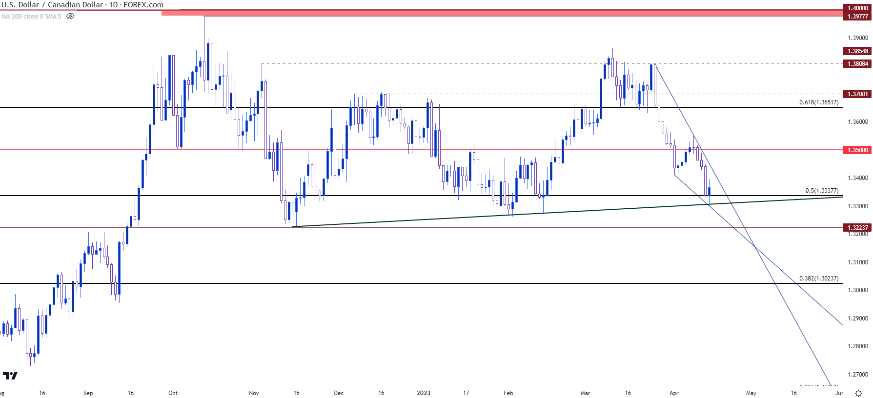 对于在过去半年中呈现区间波动的货币对来说,美元/加元最近的趋势快速下行,这带来了短期反转的可能性,正如4月交易迄今为止形成的下降楔形所显示的那样。