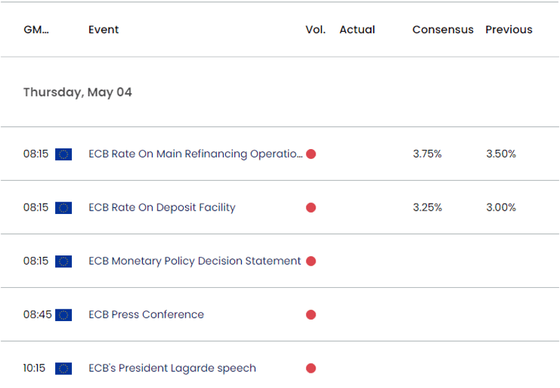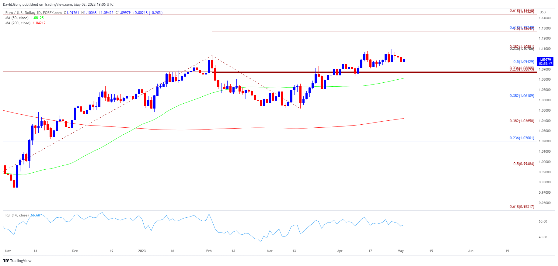 - 未能保持在移动平均线上方可能会测试4月份的低点(1.0788),但如果欧元/美元在5月的第一周触及月内低点,则可能会重现4月的价格走势。