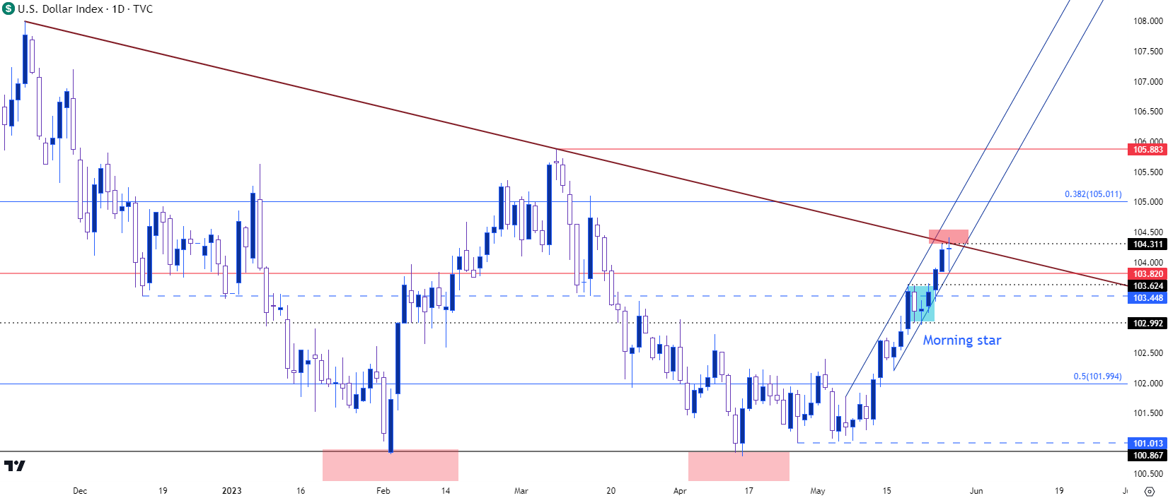 图表由James Stanley绘制,Tradingview上的欧元/美元
