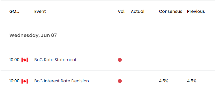然而,加拿大央行可能会对通胀居高不下做出反应,因为加拿大消费者物价指数(CPI)显示,4月整体数据从前一个月的4.3%上升至4.4%,而意外的加息可能会引发加元的看涨反应,因为委员会“仍然准备在必要时进一步提高政策利率,以使通胀率回到2%的目标”。
