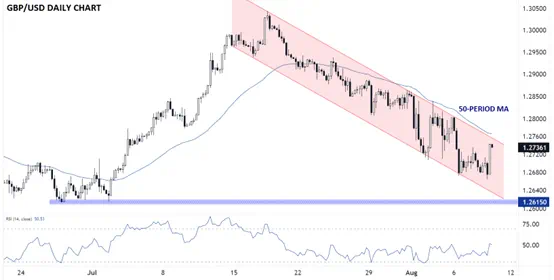 交易者可以使用RSI指标来帮助判断趋势何时会被打破。在这种情况下,英镑/美元4小时图上的14天RSI指标自看跌通道形成后不久就一直停留在清晰的范围区间30-50之间,表明看跌势头持续但不过度。因此,多头可能希望观察RSI是否能突破50水平,以预示或确认汇率自身的突破。