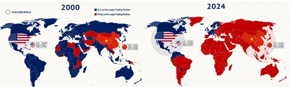 中美对外贸易格局变迁 2000 vs 2024 来源:www.econocis.net