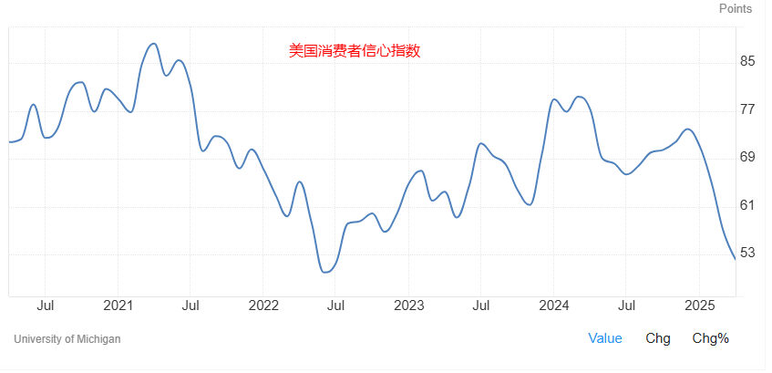 贸易政策的最糟糕的阶段或许已经过去,但经济前景面临的挑战可能才刚刚开始。关税对实体经济的影响可能会在未来数月逐步体现,因此市场将对未来几周和数月的经济数据格外敏感。在此之前,小型企业和消费者信心指数(下图)等指标已经出现大幅下滑。美国今年陷入衰退概率仍高于50%,更可怕的是出现经济滞涨的局面。