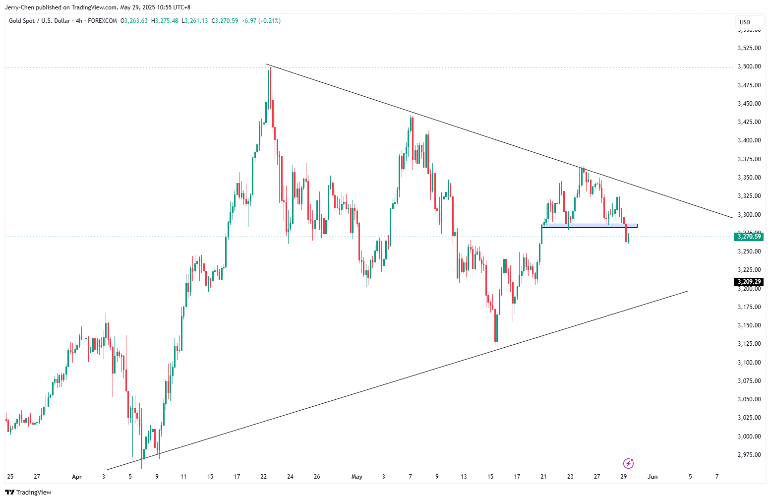 XAUUSD 4小时   来源:Tradingview